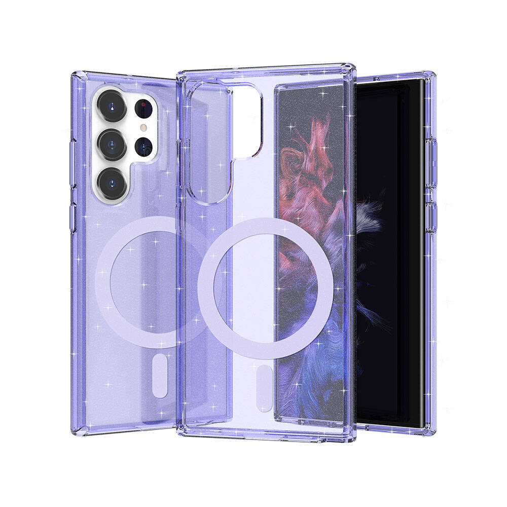 Galaxy S23 Ultra Kılıf M-safe Şarj Özellikli Parlayan Simli Saydam Renkli Zore Allstar Kapak Mor