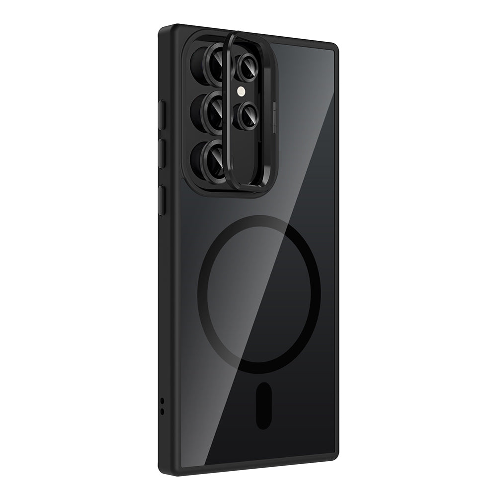 Galaxy S23 Ultra Kılıf Standlı ve Kamera Lens Hediyeli M-Safe Şarj Özellikli Zore Etro Kapak Siyah