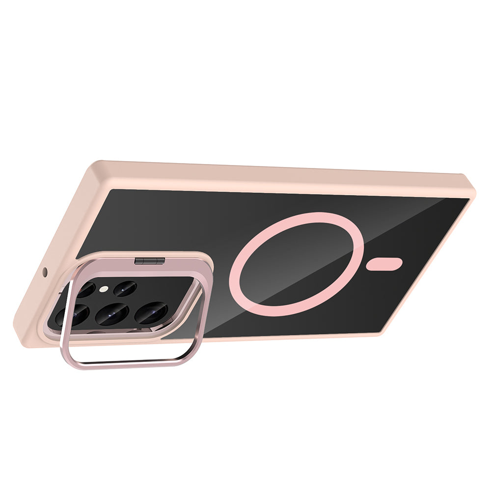 Galaxy S23 Ultra Kılıf Standlı ve Kamera Lens Hediyeli M-Safe Şarj Özellikli Zore Etro Kapak