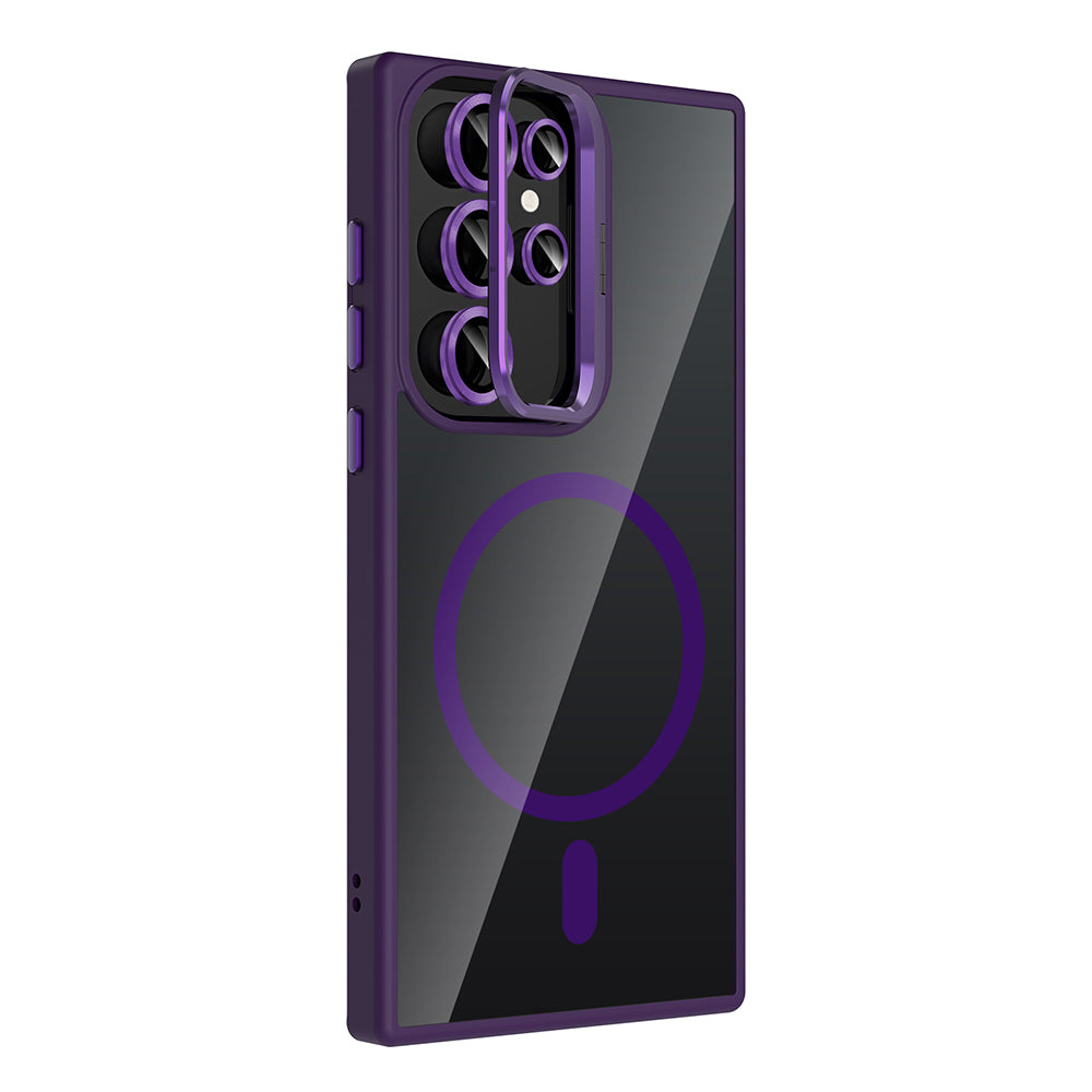 Galaxy S23 Ultra Kılıf Standlı ve Kamera Lens Hediyeli M-Safe Şarj Özellikli Zore Etro Kapak