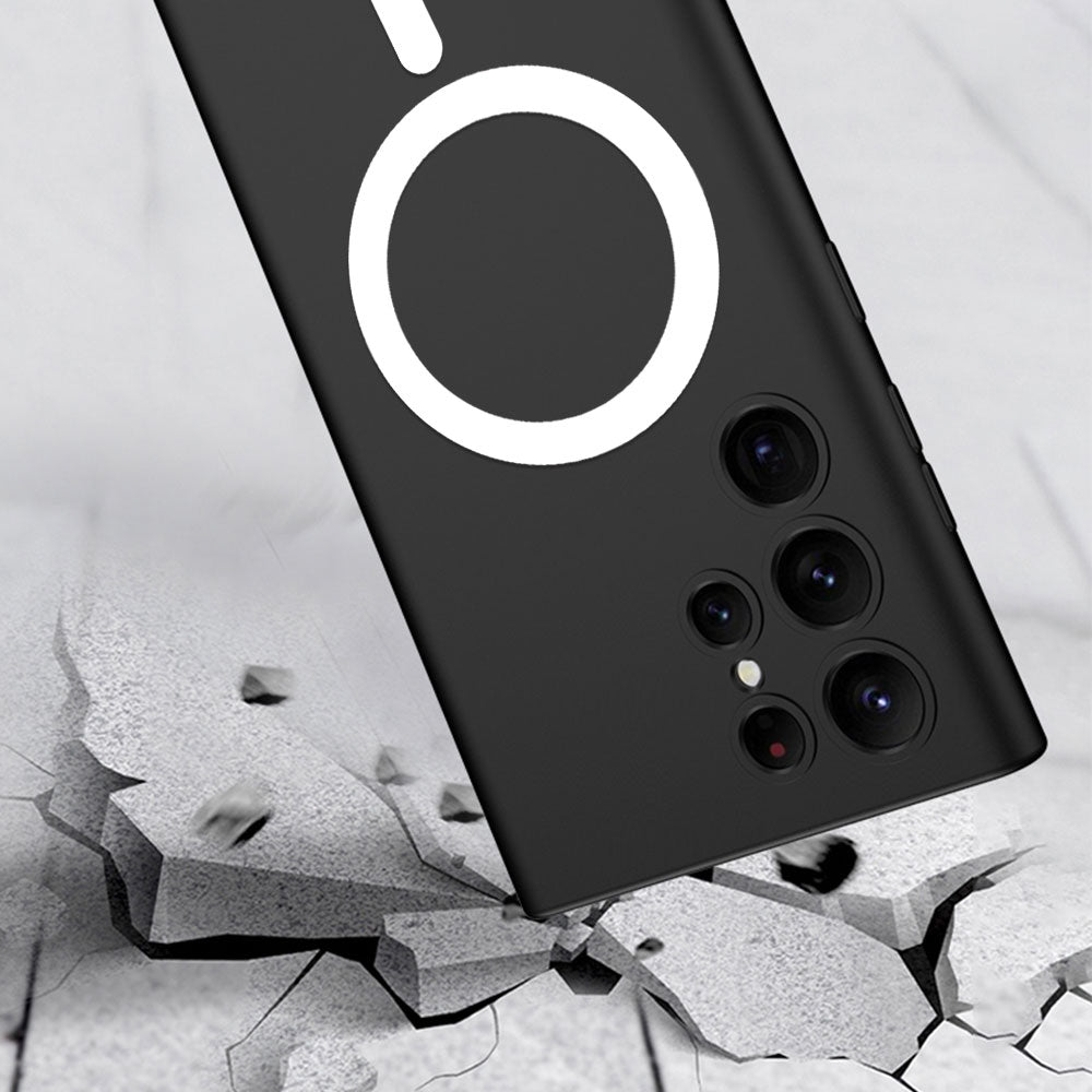Galaxy S23 Ultra Kılıf Wireless Şarj Özellikli Zore Kıpta M-safe Silikon Kapak Siyah