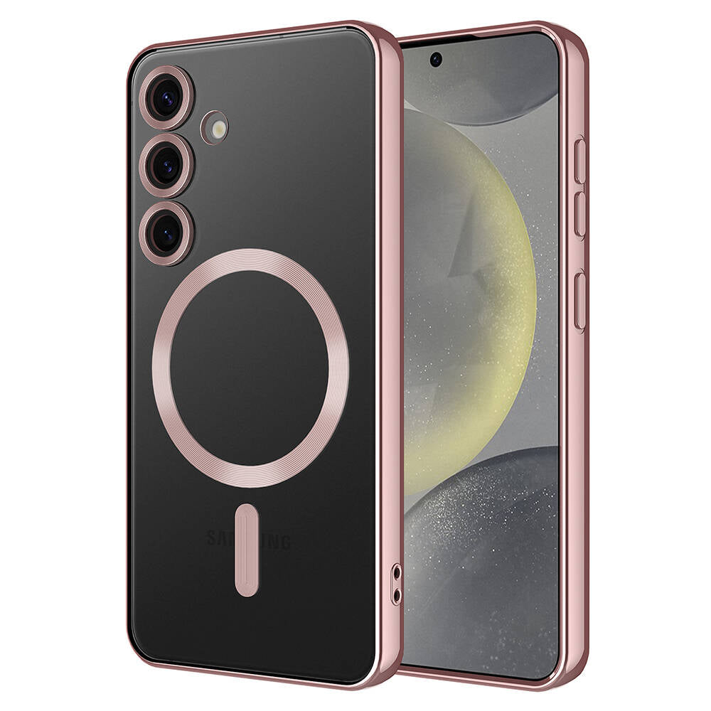 Galaxy S24 Kılıf Kamera Korumalı M-safe Wireless Şarj Özellikli Zore Demre Kapak Rose Gold