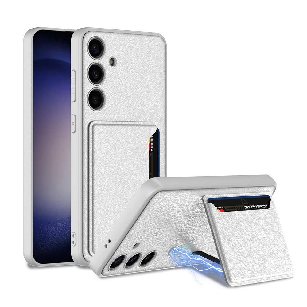 Galaxy S24 Suni Deri Arka Yüzey Zore Kartlıklı Kıpta Silikon Kapak Gümüş
