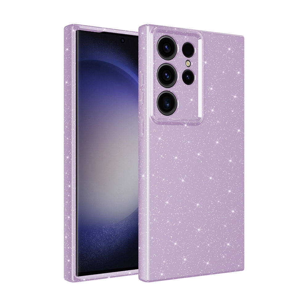 Galaxy S24 Ultra Kılıf Kamera Korumalı Simli Lüks Zore Koton Kapak Lila