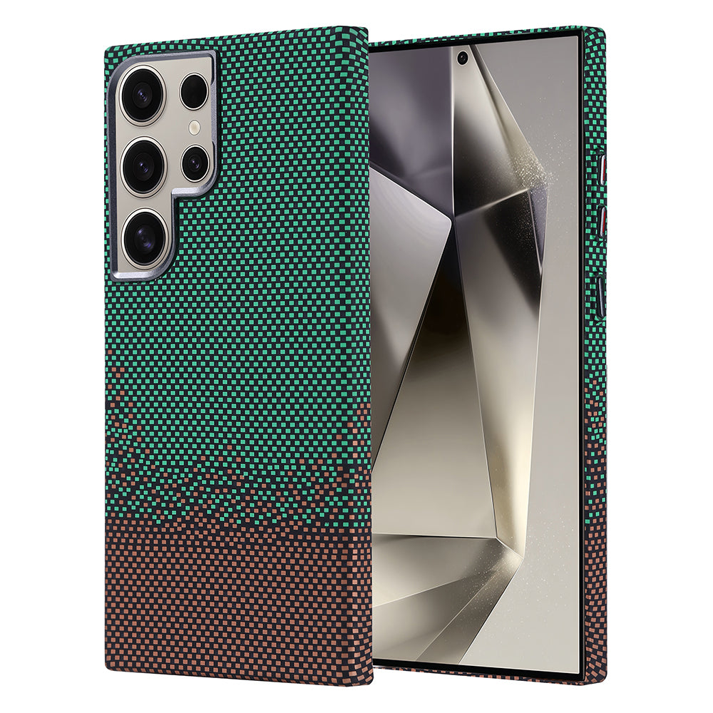 Galaxy S24 Ultra Kılıf M-safe Şarj Özellikli Karbon Fiber Görünümlü Zore Nekst Kapak Yeşil