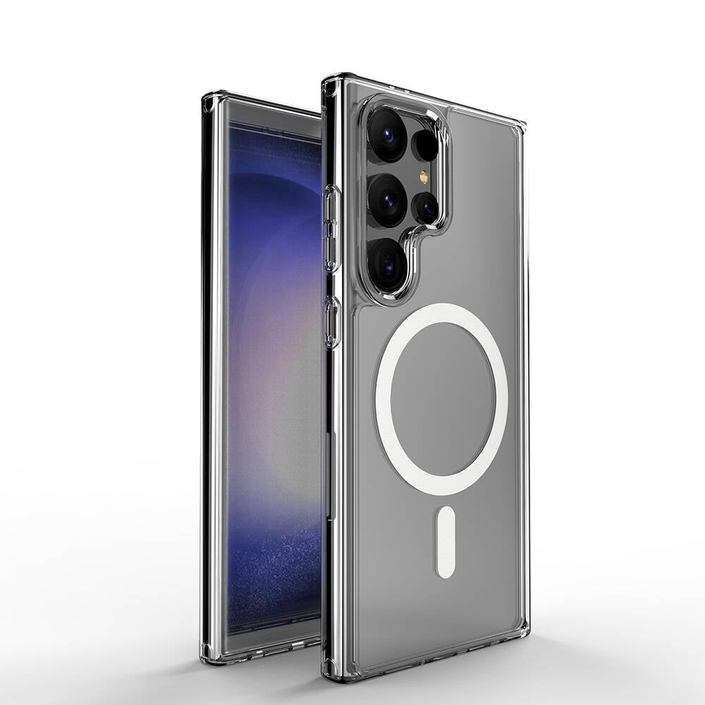 Galaxy S24 Ultra Kılıf M-safe Şarj Özellikli Şeffaf Sert PC Zore Embos Kapak Renksiz
