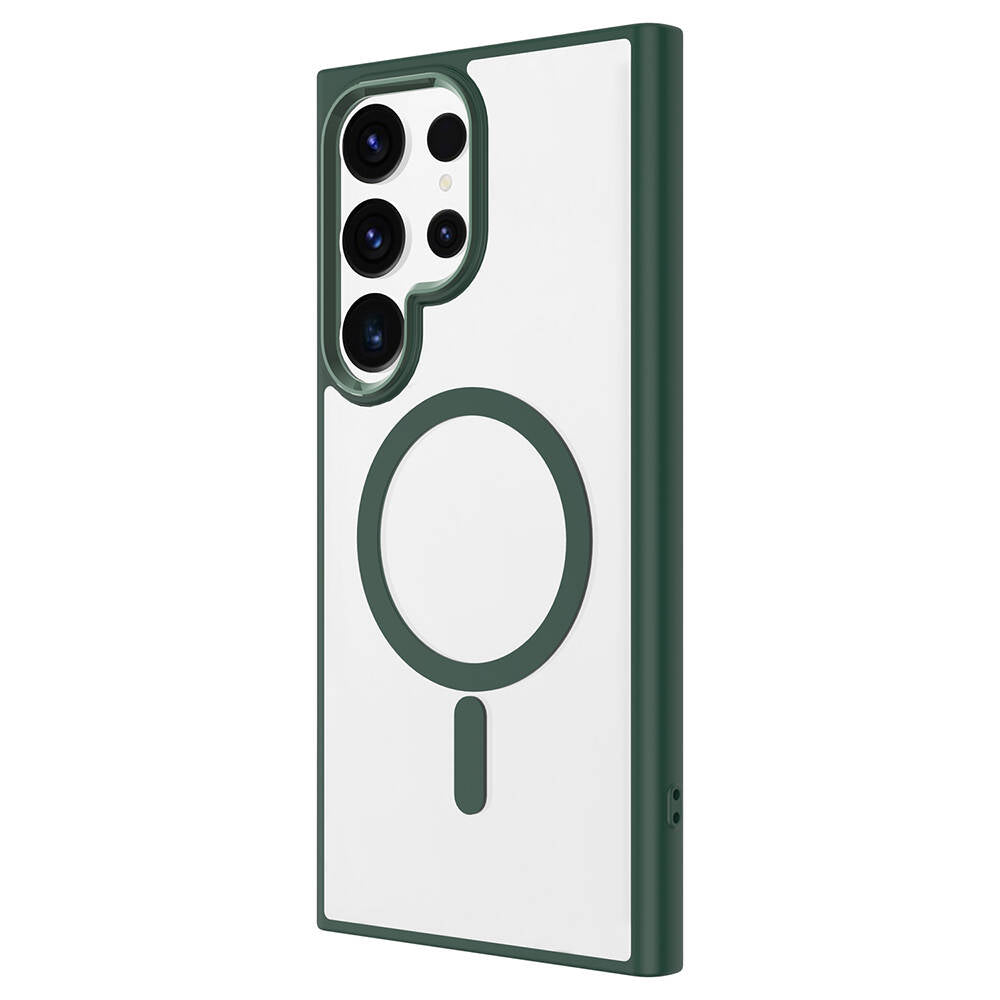 Galaxy S24 Ultra Kılıf M-safe Şarj Özellikli Zore Krom M-safe Silikon Kapak Koyu Yeşil