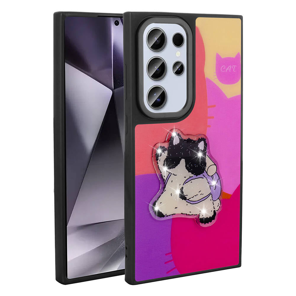 Galaxy S24 Ultra Kılıf Parlayan Kabartmalı İkonik Figürlü Zore Amas Silikon Kapak Mor