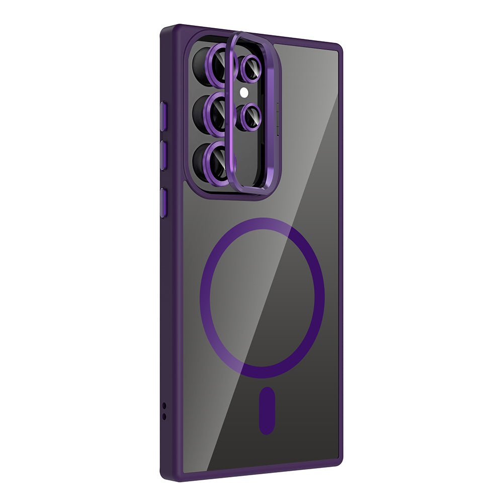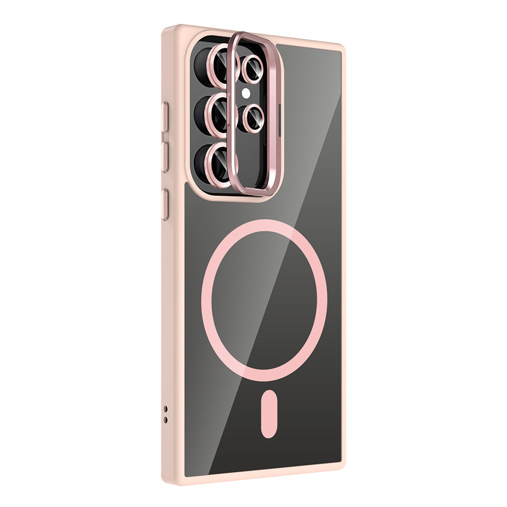 Galaxy S24 Ultra Kılıf Standlı ve Kamera Lens Hediyeli M-Safe Şarj Özellikli Zore Etro Kapak