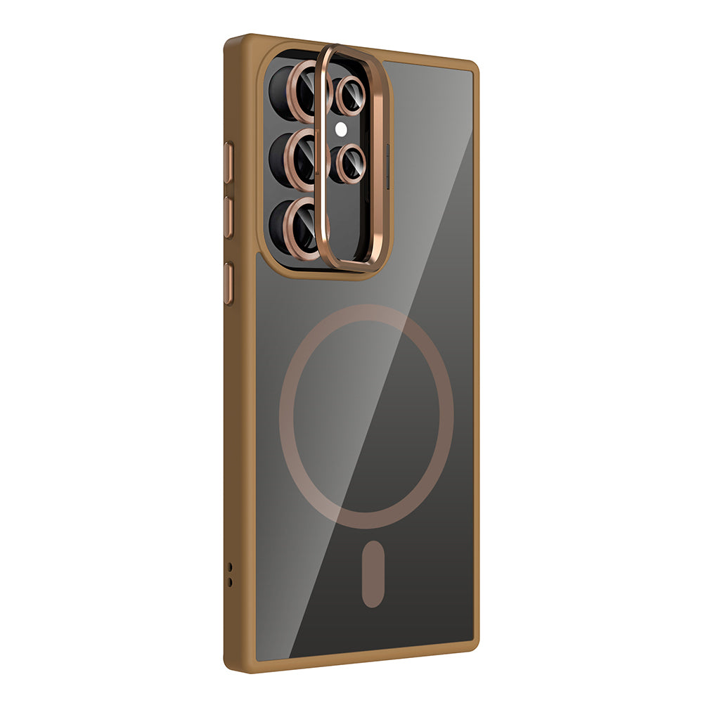 Galaxy S24 Ultra Kılıf Standlı ve Kamera Lens Hediyeli M-Safe Şarj Özellikli Zore Etro Kapak Desert Titanyum