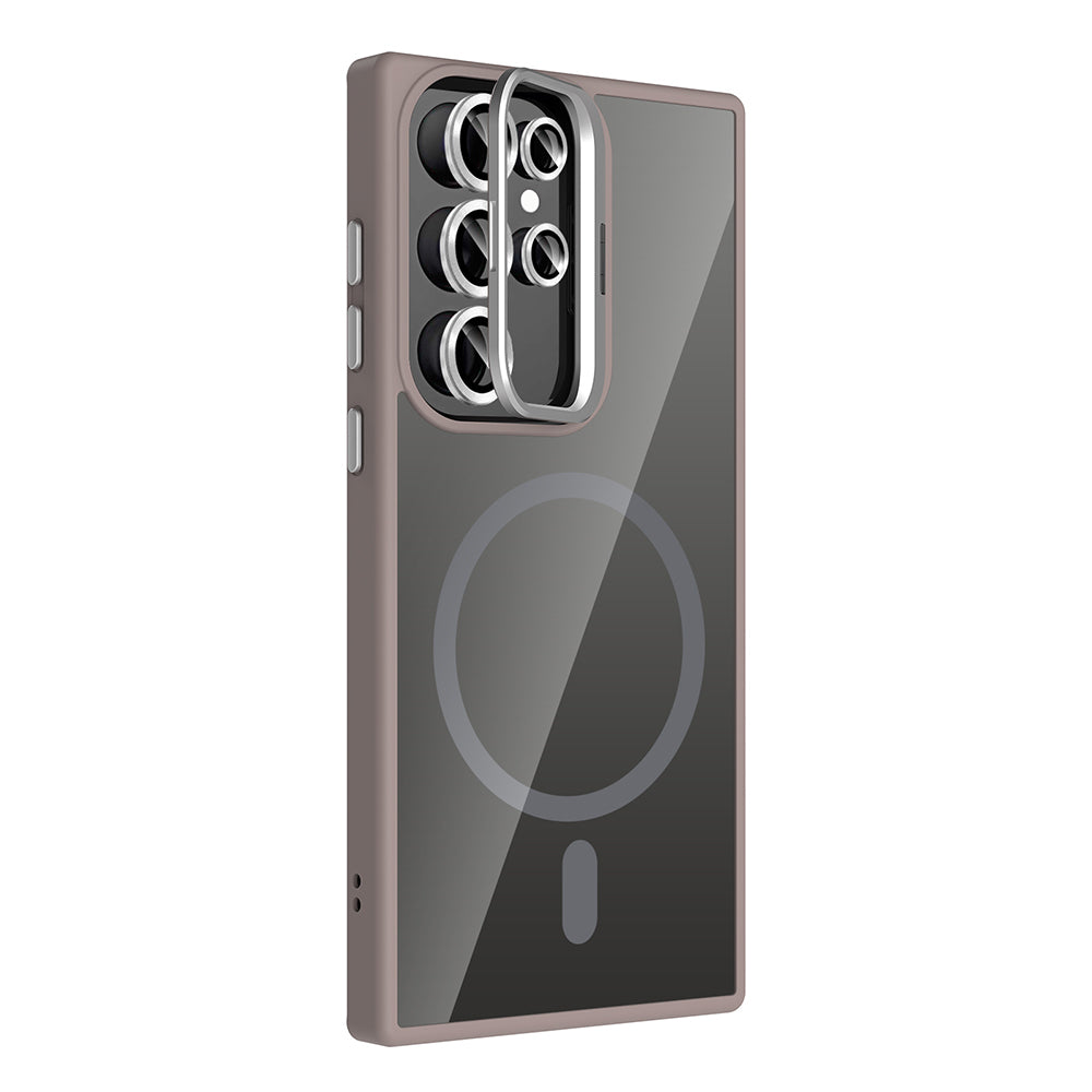 Galaxy S24 Ultra Kılıf Standlı ve Kamera Lens Hediyeli M-Safe Şarj Özellikli Zore Etro Kapak