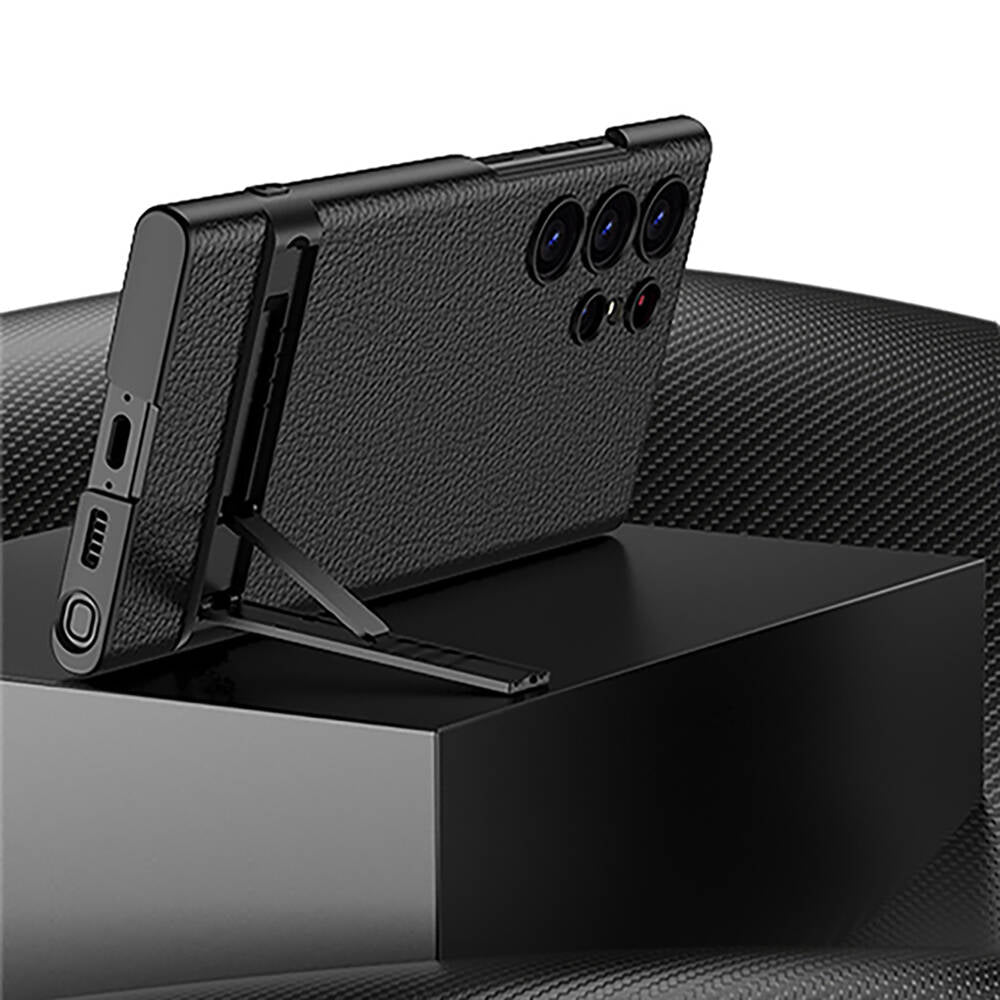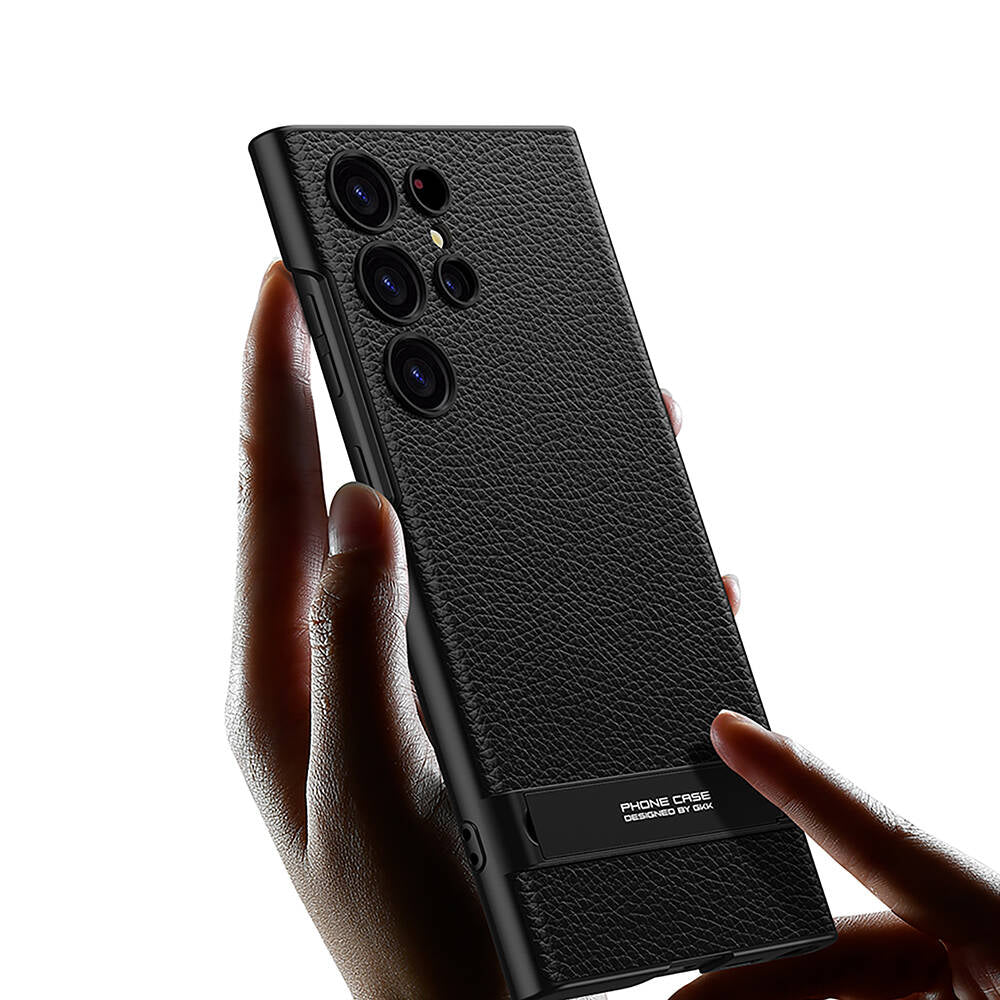 Galaxy S24 Ultra Kılıf Zore Kamera Korumalı Leather Dikey Standlı Ays Kapak Siyah