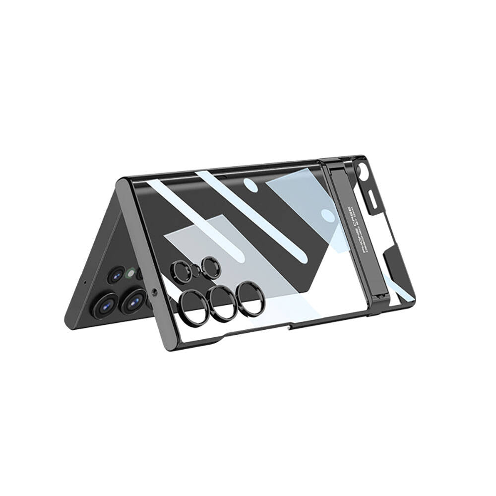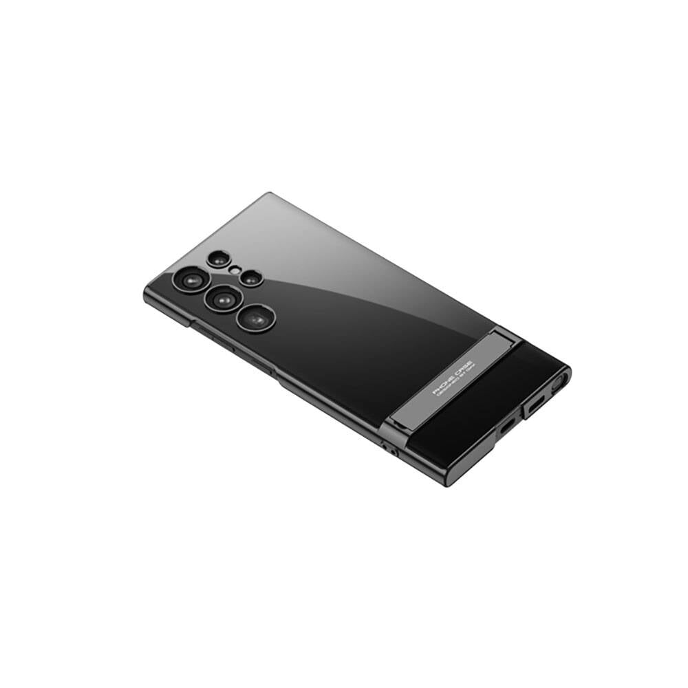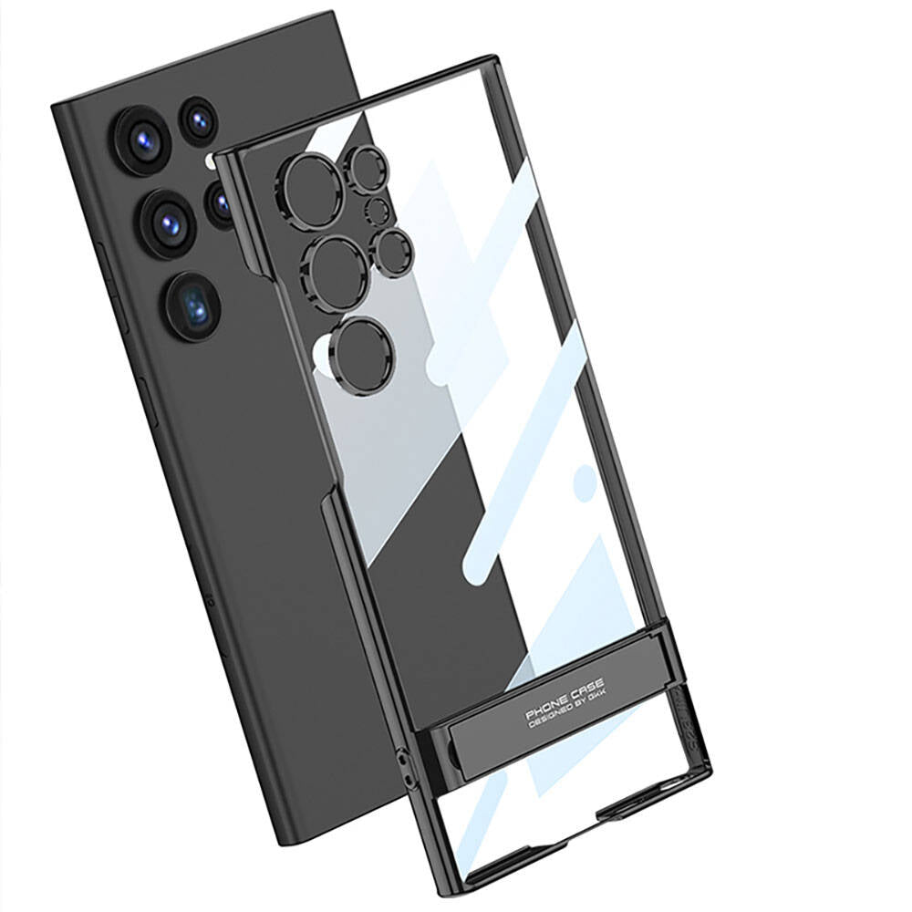 Galaxy S24 Ultra Kılıf Zore Kamera Korumalı Şeffaf Dikey Standlı Ays Kapak Siyah