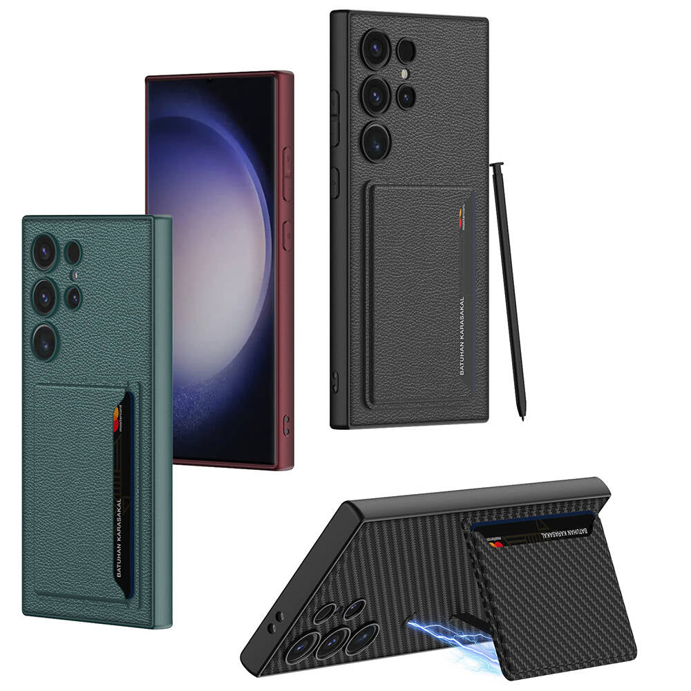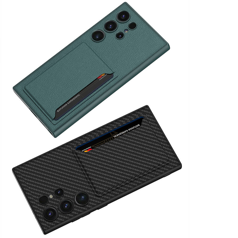 Galaxy S24 Ultra Suni Deri Arka Yüzey Zore Kartlıklı Kıpta Silikon Kapak Yeşil