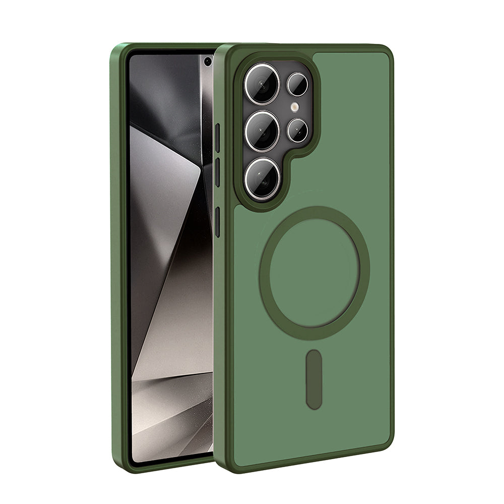 Galaxy S25 Ultra Kılıf M-safe Şarj Özellikli Mat Arka Yüzey Zore Sio Kapak Koyu Yeşil