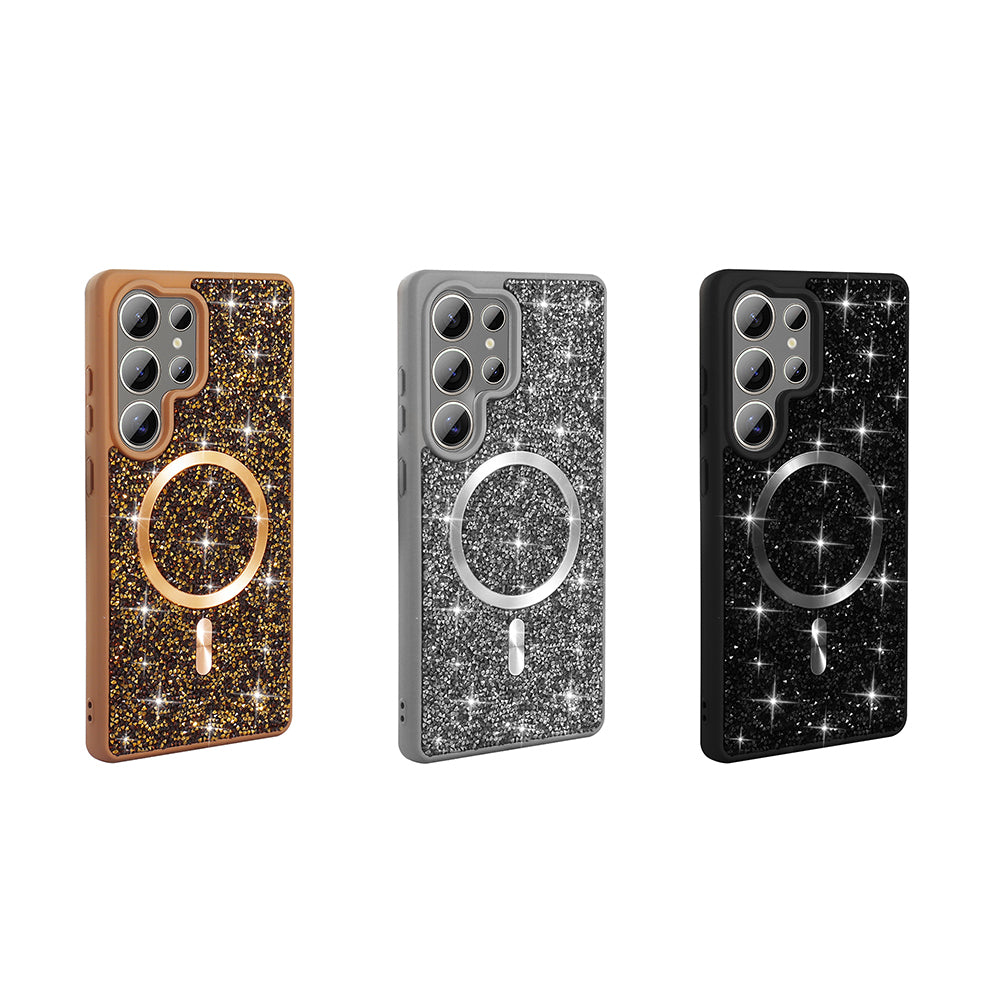 Galaxy S25 Ultra Kılıf Pırlanta Tasarımlı Magsafe Şarj Özellikli Zore Mozaik Silikon Kapak