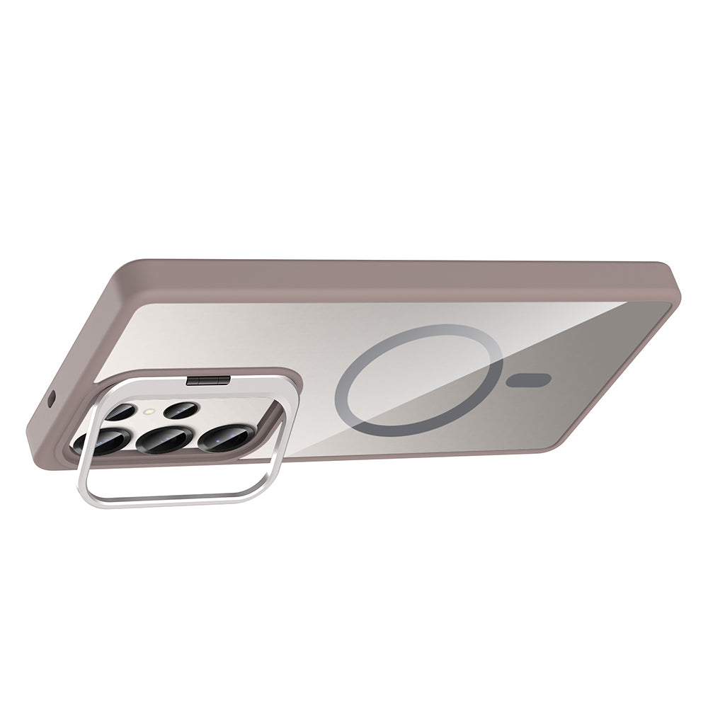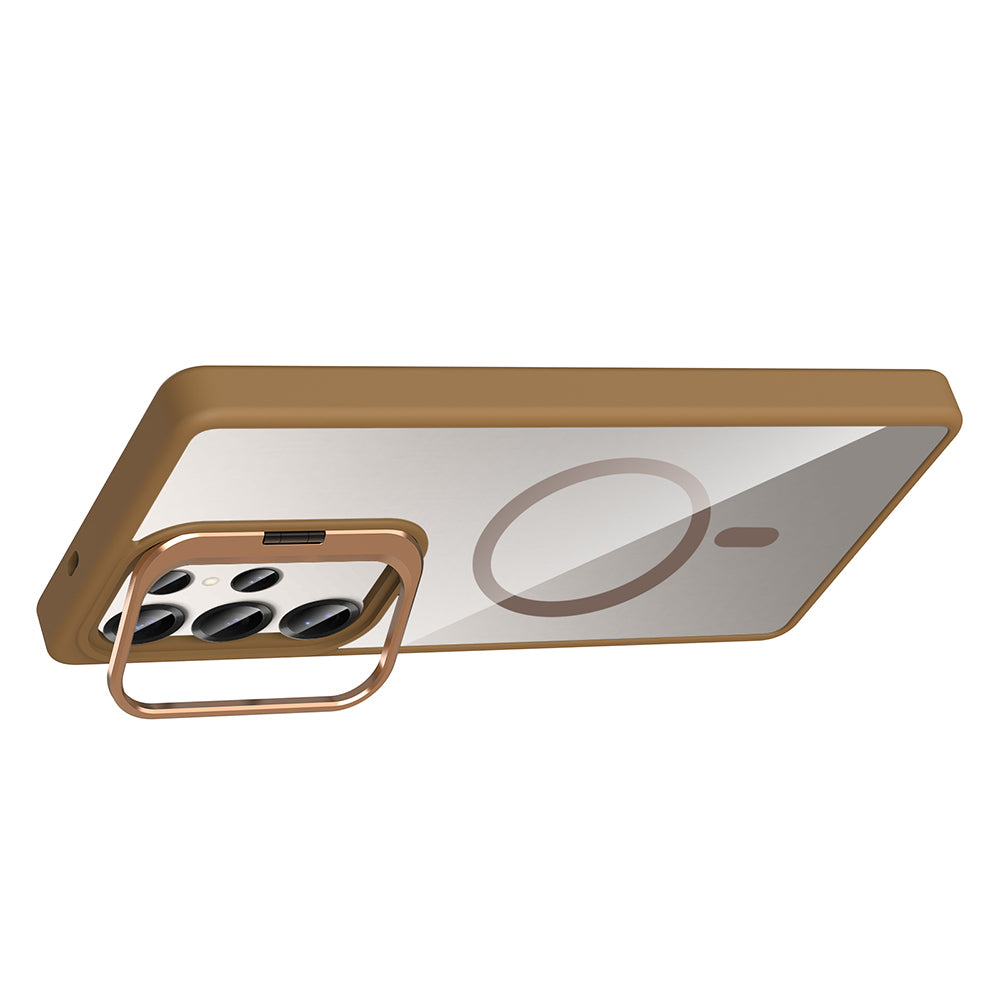 Galaxy S25 Ultra Kılıf Standlı ve Kamera Lens Hediyeli M-Safe Şarj Özellikli Zore Etro Kapak