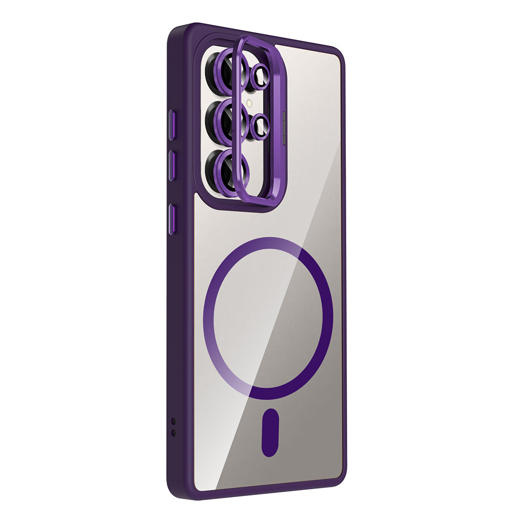 Galaxy S25 Ultra Kılıf Standlı ve Kamera Lens Hediyeli M-Safe Şarj Özellikli Zore Etro Kapak