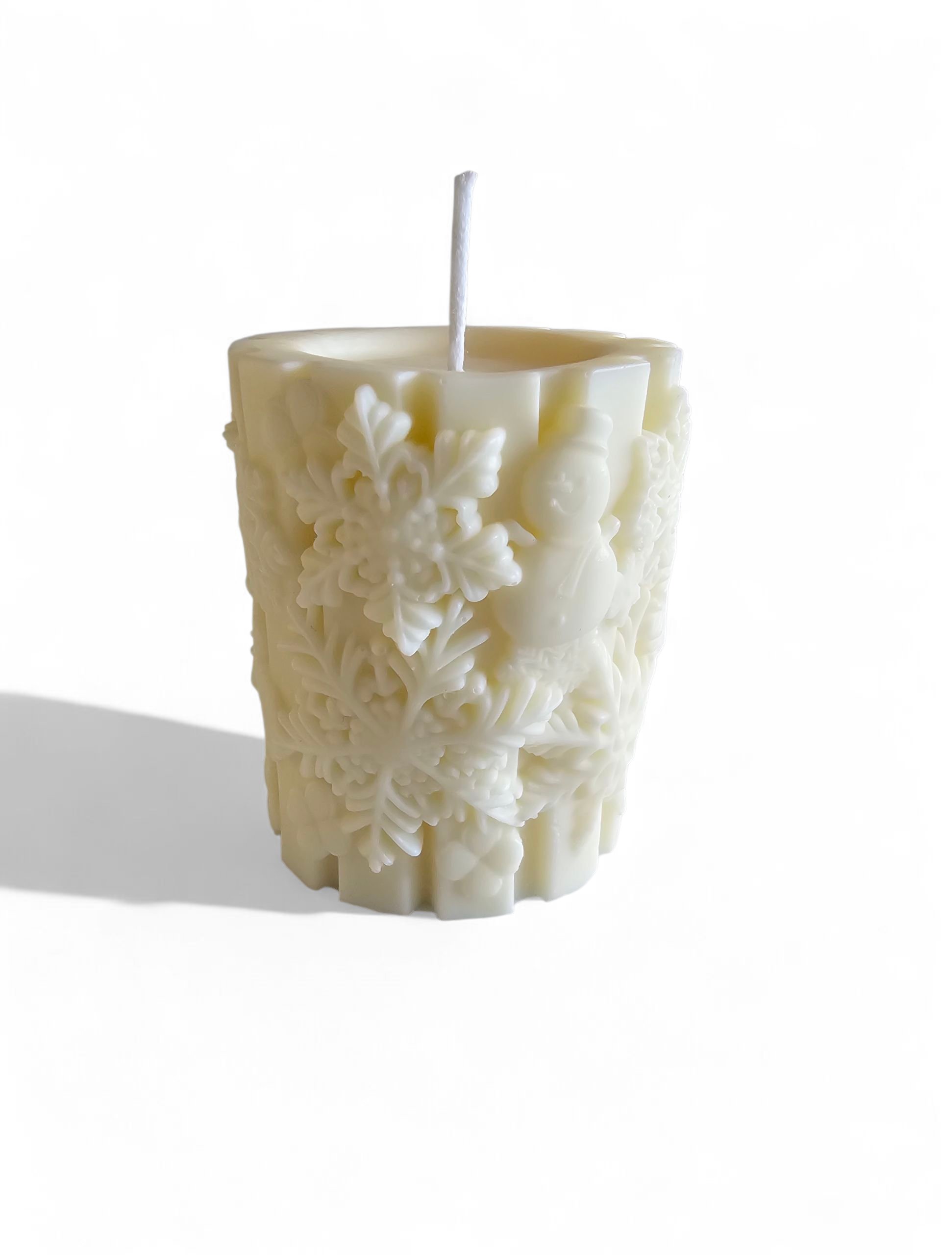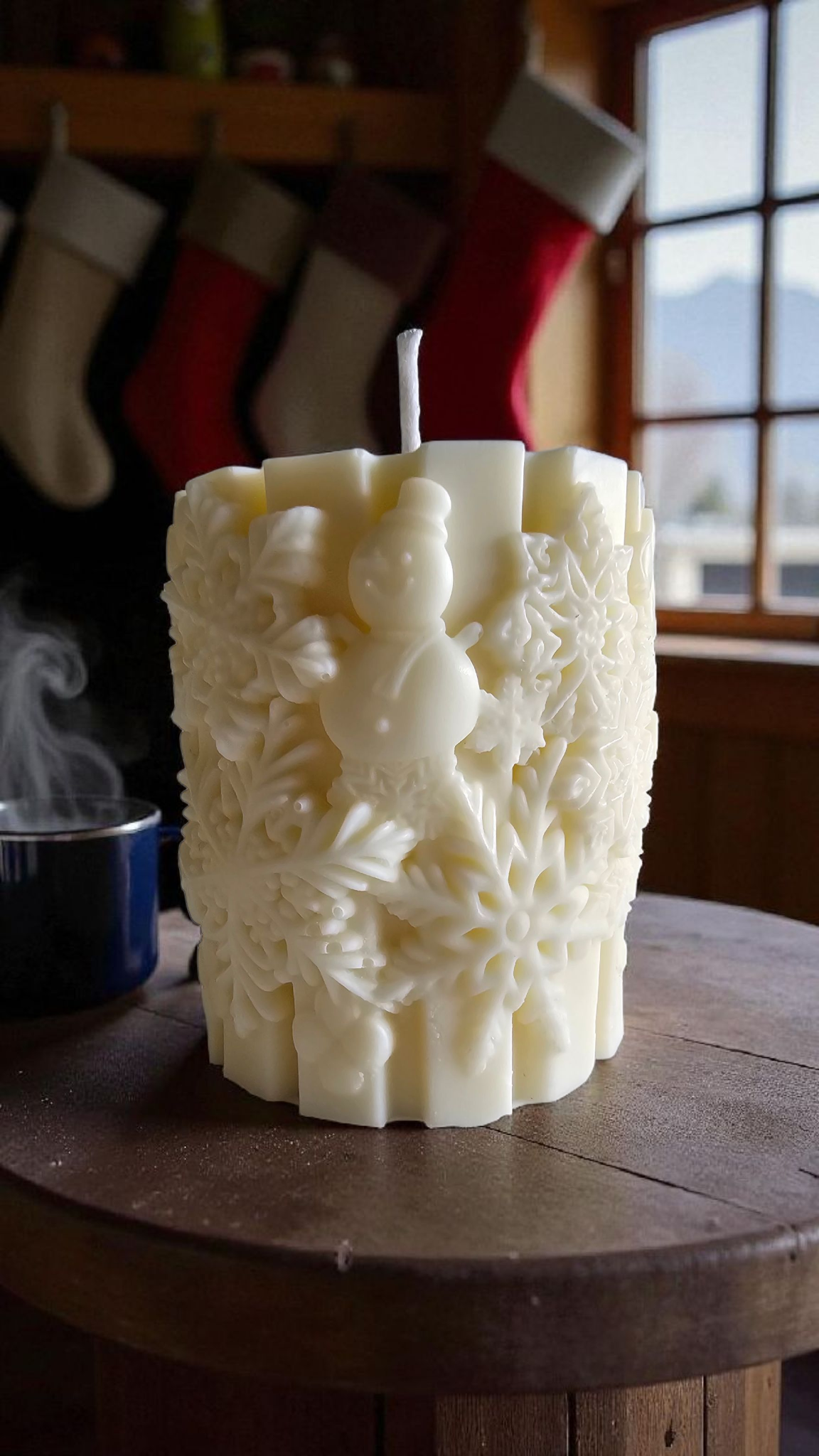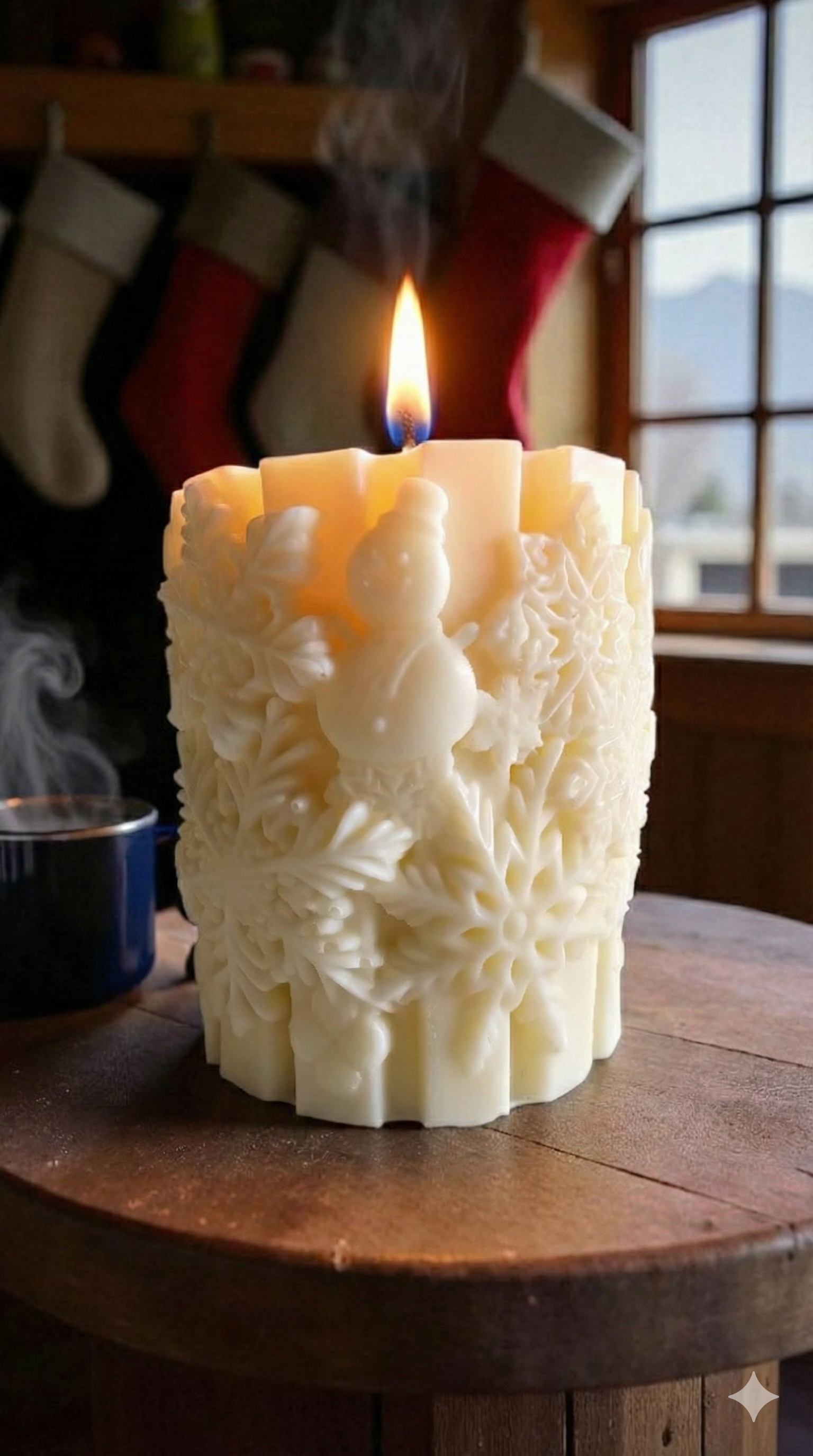 Özel tasarım Kardan Adamlı Kış Serisi mumumuz, sadece bir aydınlatma aracı değil, dekorasyonunuzun en sevimli parçası olmaya aday. Üzerindeki kabartmalı kar taneleri, çam dalları ve neşeli kardan adam figürü, alevin titrek ışığıyla dans ederek duvarlarınızda masalsı gölgeler oluşturur. Soğuk kış günlerinin griliğini, bu mumun yaydığı sıcacık enerjiyle dağıtın. Kendiniz için bir huzur köşesi yaratın veya sevdiklerinize 'içini ısıtacak' bir yeni yıl hediyesi verin."