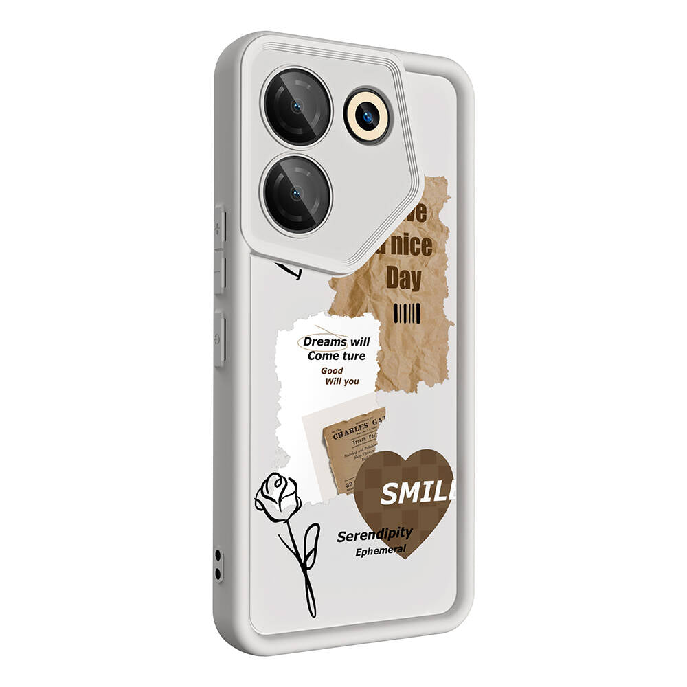 Tecno Camon 20 Pro 5G Kılıf Kamera Korumalı Baskılı Arka Yüzey Zore Klas Kapak Beyaz