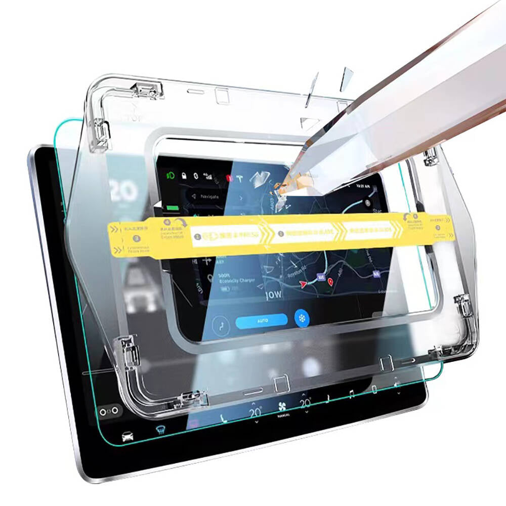 Tesla Model 3 Araç Multimedya Ekran Koruyucu AR Oleofobik Uygulama Aparatlı Zore Premium Temperli Cam Ekran Koruyucu Şeffaf