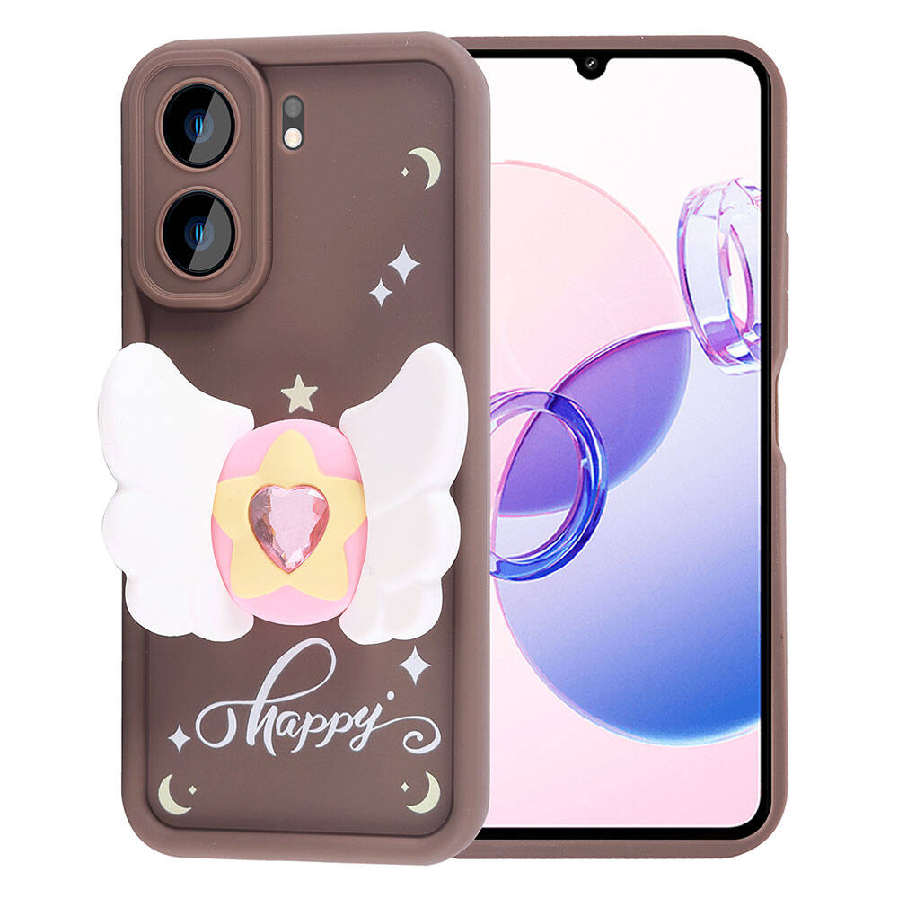 Xiaomi Poco C65 Kılıf Kamera Korumalı Figür Tasarımlı Zore Kapya Kapak Pembe Açık