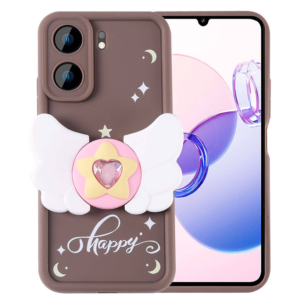 Xiaomi Poco C65 Kılıf Kamera Korumalı Figür Tasarımlı Zore Kapya Kapak Koyu Kahve