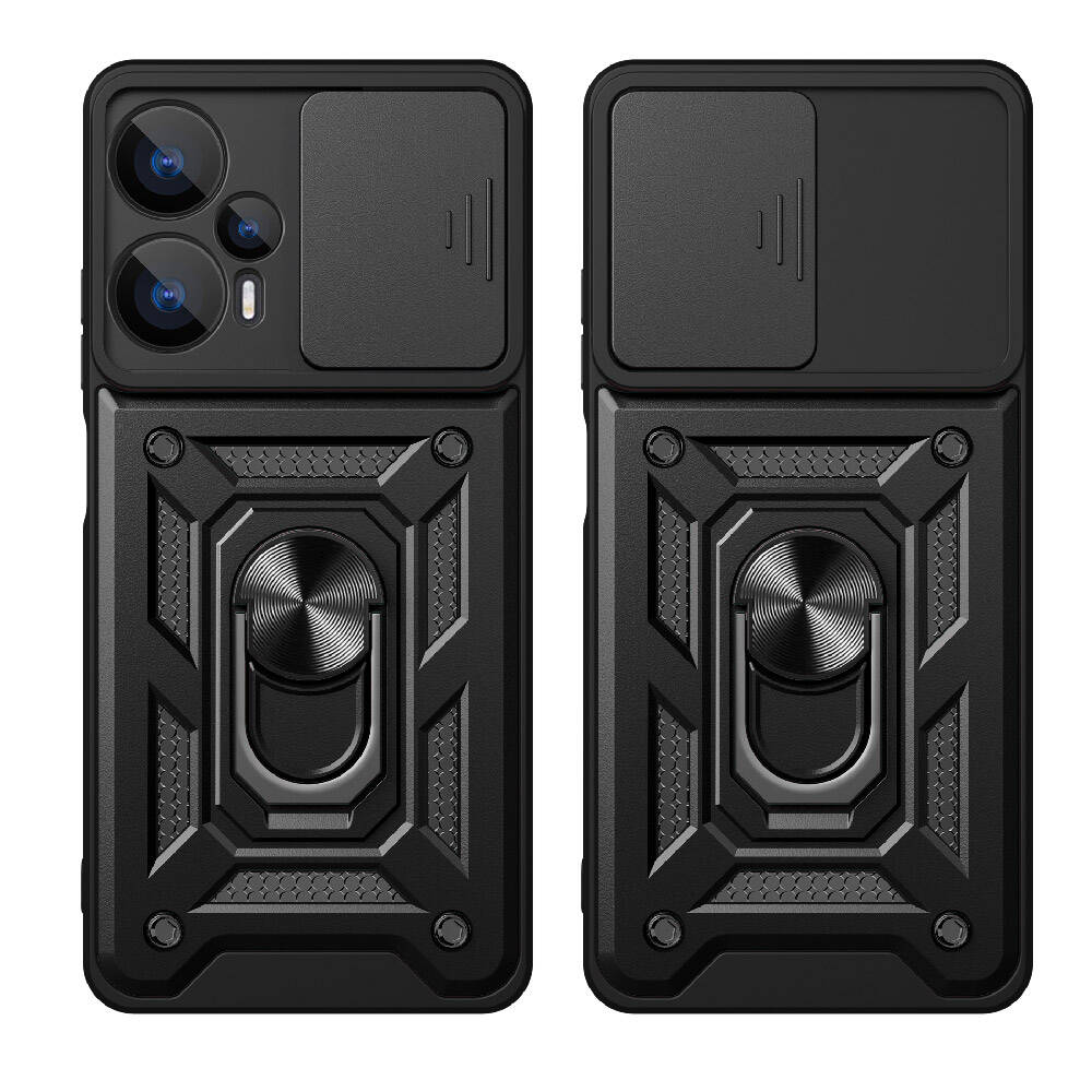 Xiaomi Poco F5 Kılıf Magnetik Standlı Kamera Korumalı Zore Sürgülü Vega Kapak Siyah