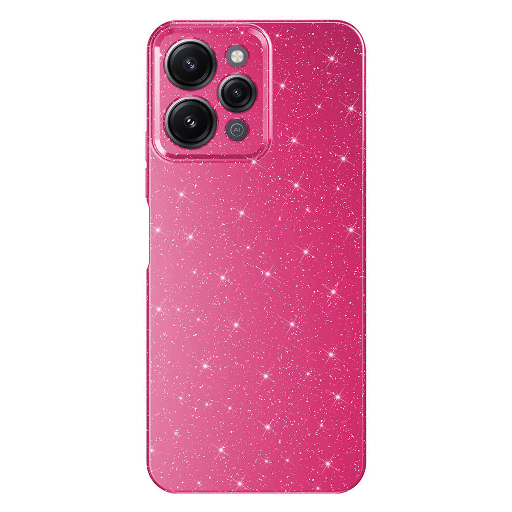 Xiaomi Redmi 12 Kılıf Kamera Korumalı Simli Lüks Zore Koton Kapak Pembe Koyu