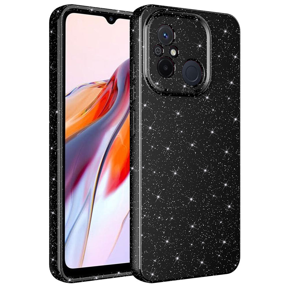 Xiaomi Redmi 12C Kılıf Kamera Korumalı Simli Lüks Zore Koton Kapak Siyah