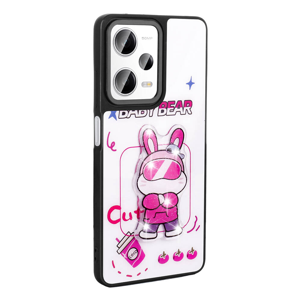 Xiaomi Redmi Note 12 Pro 5G Kılıf Parlayan Kabartmalı İkonik Figürlü Zore Amas Silikon Kapak Beyaz