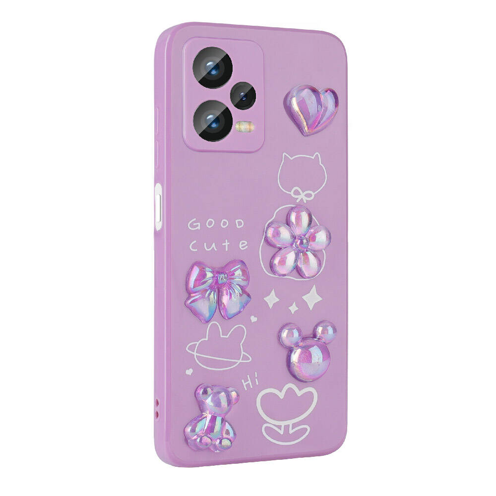 Xiaomi Redmi Note 12 Pro Plus 5G Kılıf Kabartma Figürlü Parlak Zore Toys Silikon Kapak Mor