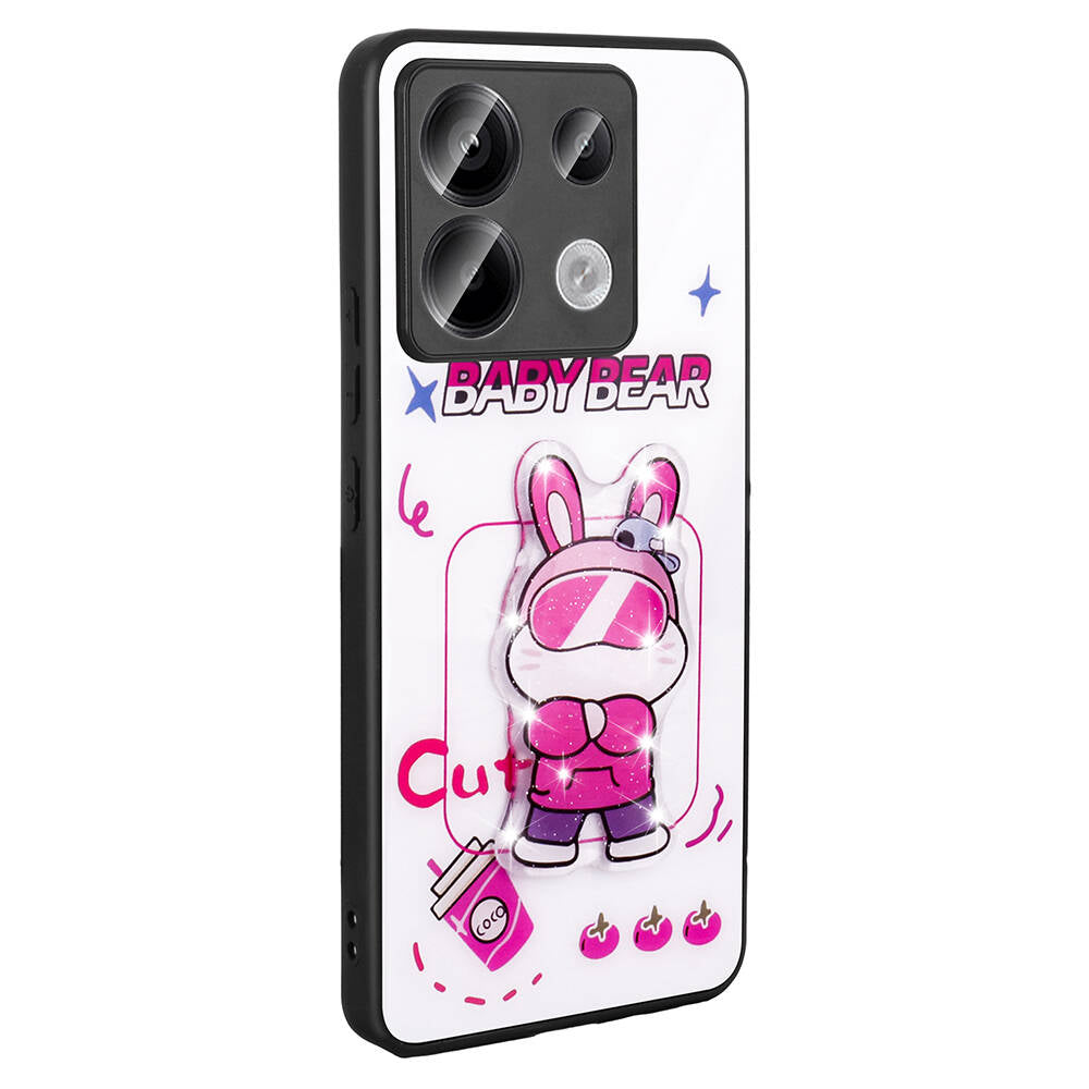 Xiaomi Redmi Note 13 Pro 5G Kılıf Parlayan Kabartmalı İkonik Figürlü Zore Amas Silikon Kapak Beyaz