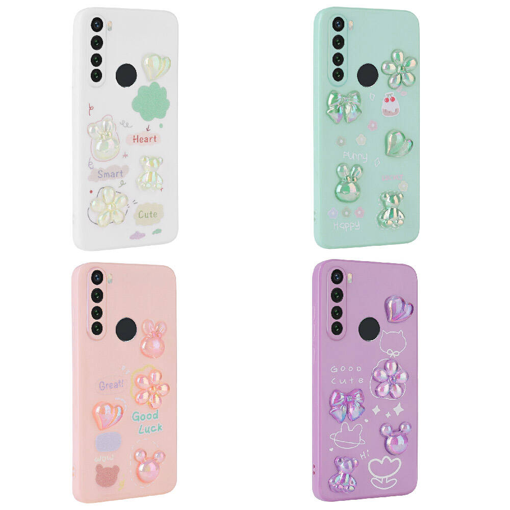 Xiaomi Redmi Note 8 Kılıf Kabartma Figürlü Parlak Zore Toys Silikon Kapak Pembe