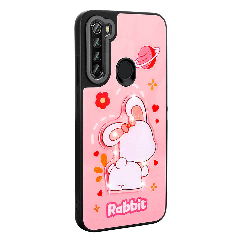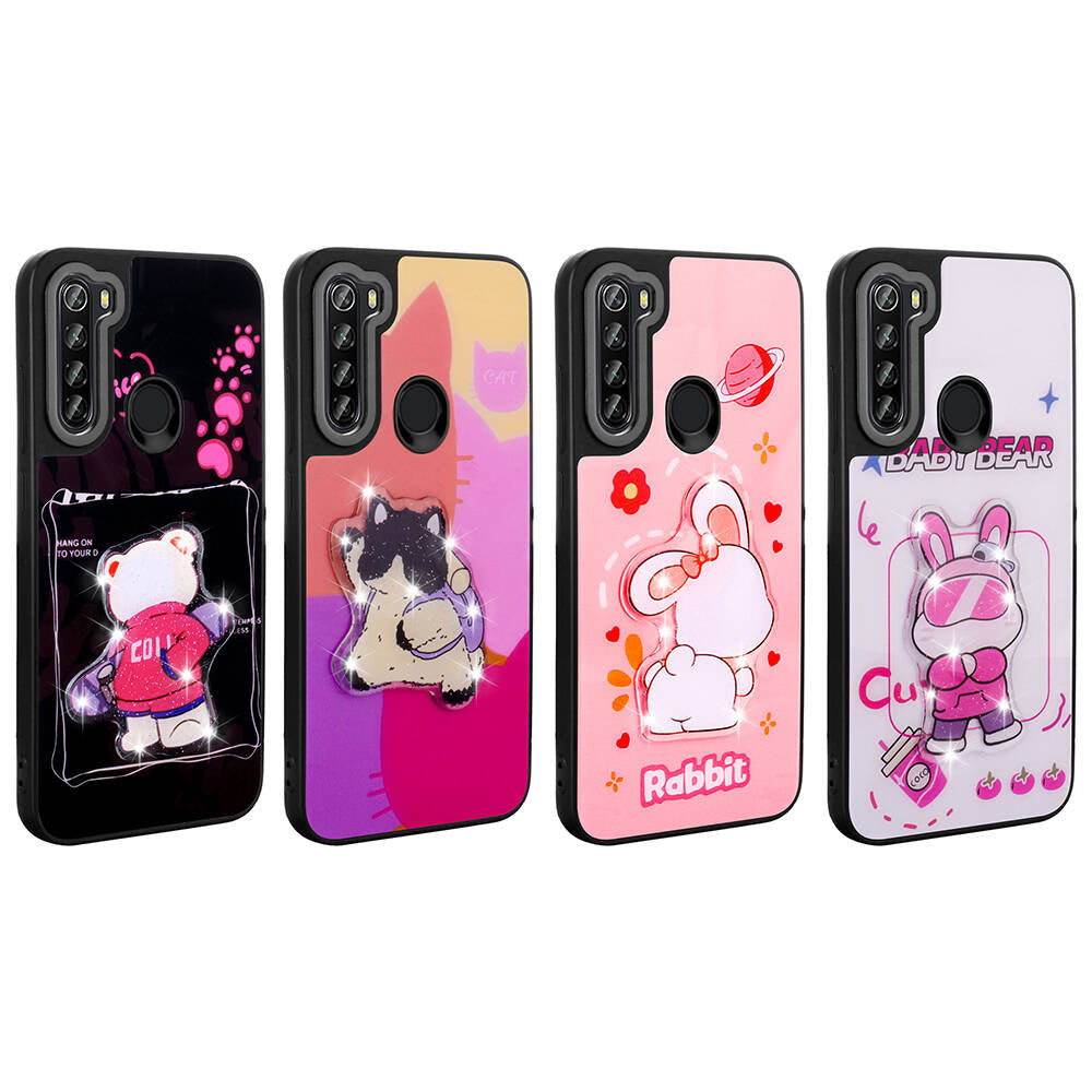 Xiaomi Redmi Note 8 Kılıf Parlayan Kabartmalı İkonik Figürlü Zore Amas Silikon Kapak Mor