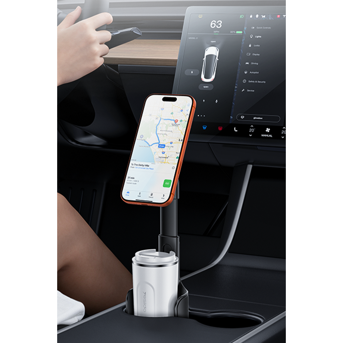 C şeklindeki boşluklu taban yapısı sayesinde bardak tutucu ile telefon tutucu aynı anda kullanılabilir. Alan verimliliğini maksimum seviyeye çıkarır.