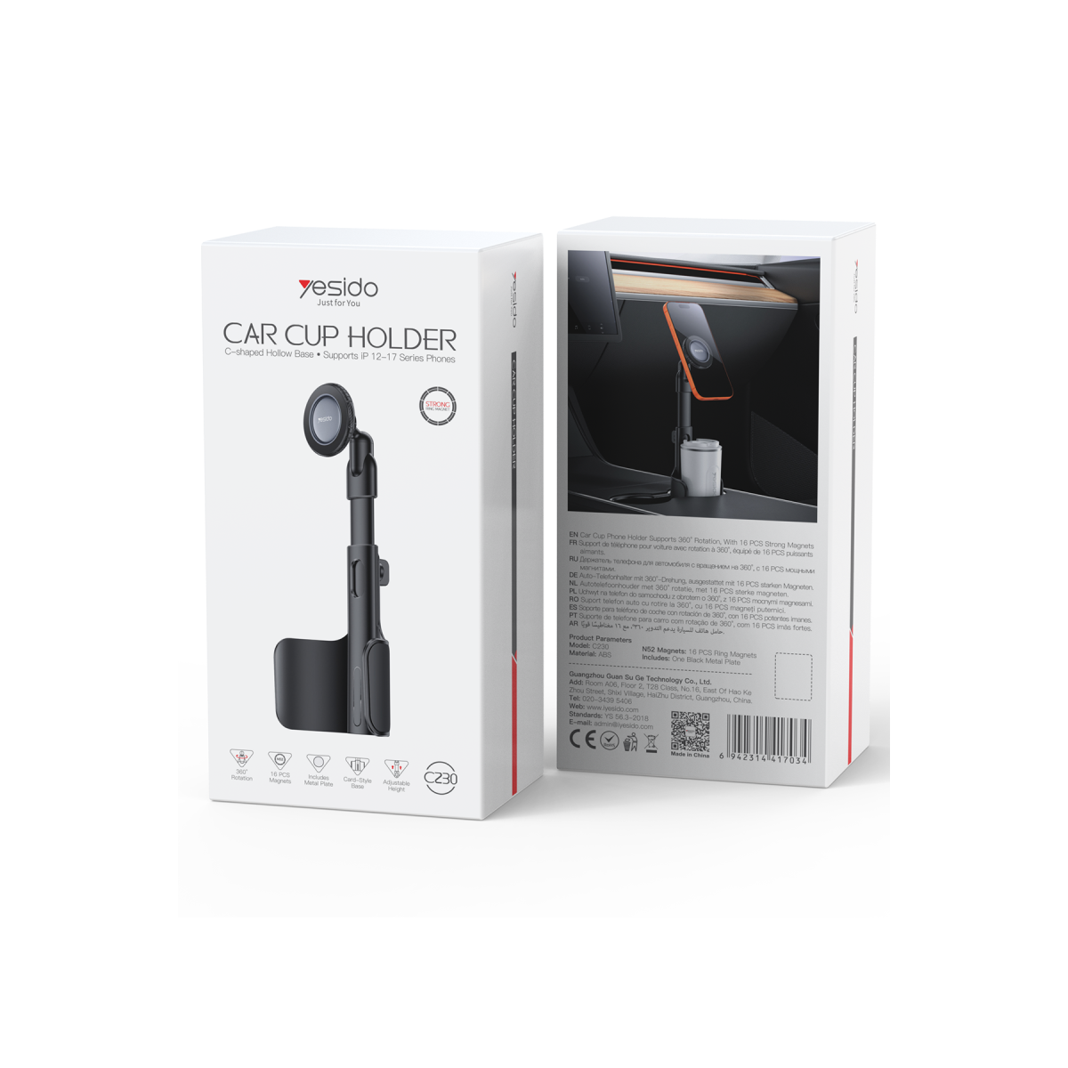Yesido C230 Ayarlanabilir Yükseklikli 360 Derece Dönen 16 Mıknatıslı Bardaklıklı Magsafe Araç Tutucu